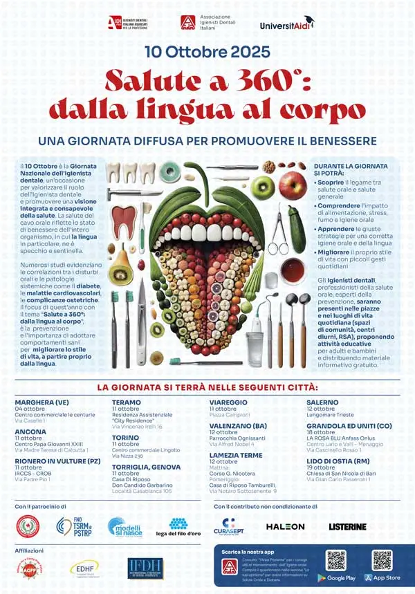 Claim dell’edizione 2025 è “Salute a 360°: dalla lingua al corpo”, per sottolineare il messaggio sull’importanza di adottare comportamenti sani, per migliorare il proprio stile di vita a partire dalle corrette strategie di igiene orale e della lingua.